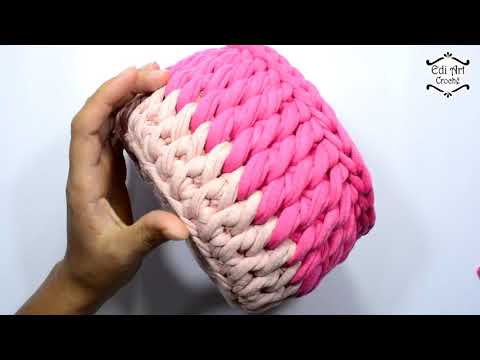 Cesto de crochê iniciante ponto inclinado fio de malha: